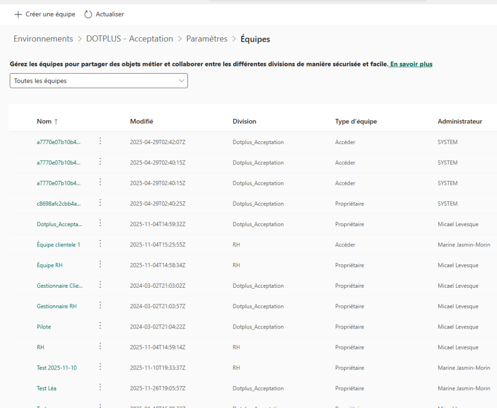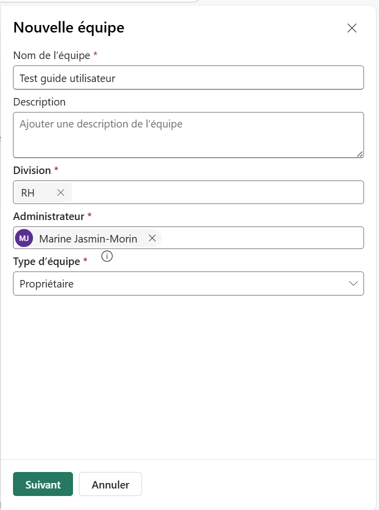 - Nom de l’équipe (ex. : « Approbateurs régionaux »).