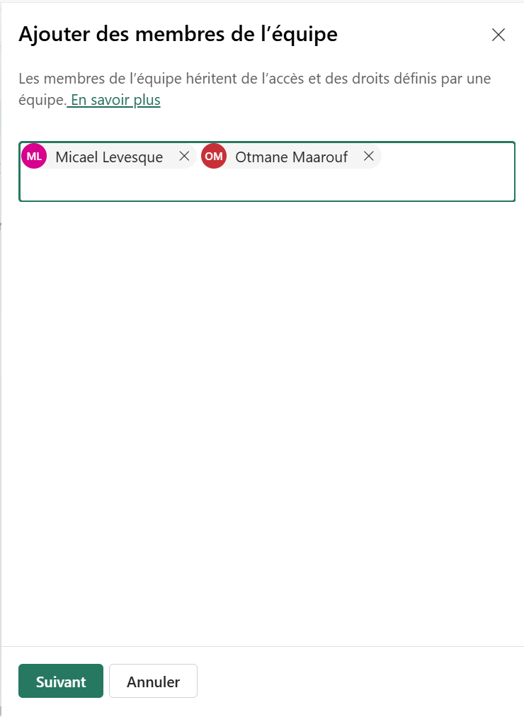 Les membres héritent automatiquement des rôles associés à l’équipe.