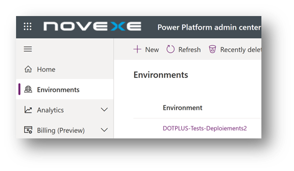 2. Aller à l’option Environnements et choisir l’environnement en question