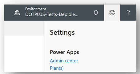 3. Sélectionner l’option Settings dans la page de l’environnement