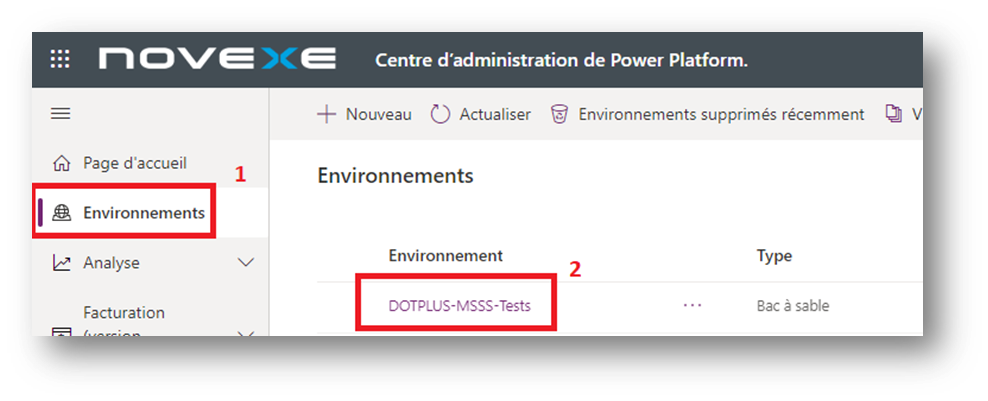 1. Aller dans le centre d’administration Power Platform à Environnements