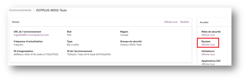 1. Pour créer les équipes qui seront utilisées dans l’application DOT+, rendez-vous dans l’administration de la Power Platform à l’adresse suivante : https://admin.powerplatform.microsoft.com/.