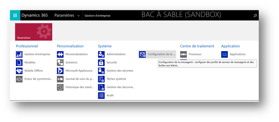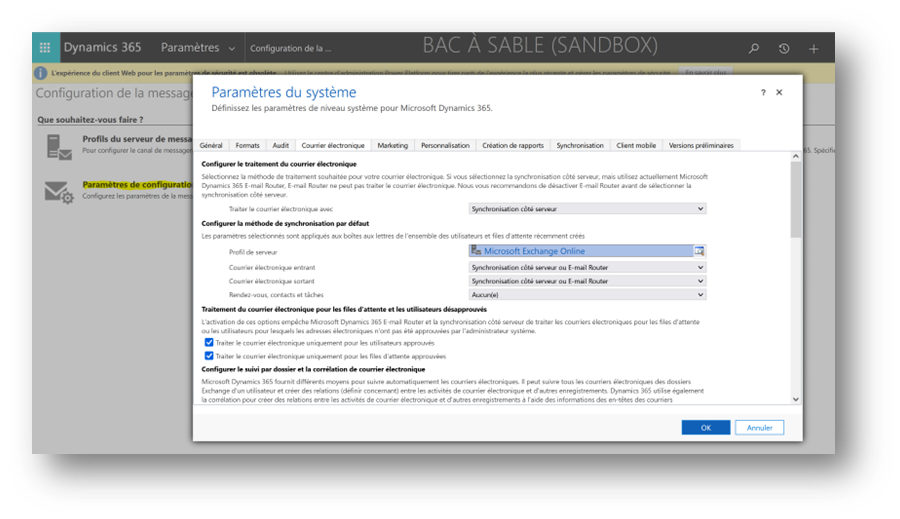 1. Paramètres de configuration de la messagerie