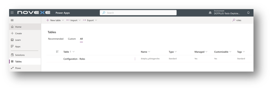Cliquez sur l’option « Tables » dans le menu de gauche et cherchez la table « Configuration – Rôles » :
