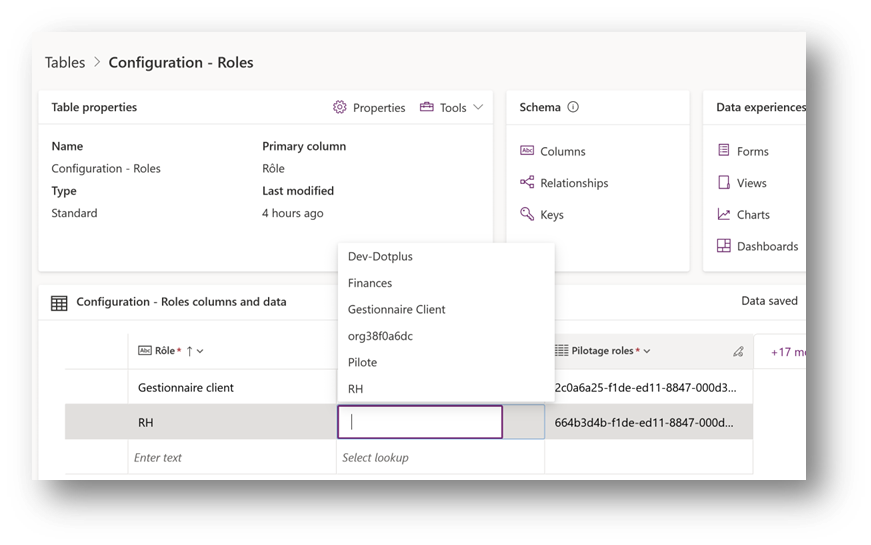La solution Dot+ contient quelques tables de configuration système qui doivent être populées avant l’utilisation de l’application. Les voici.