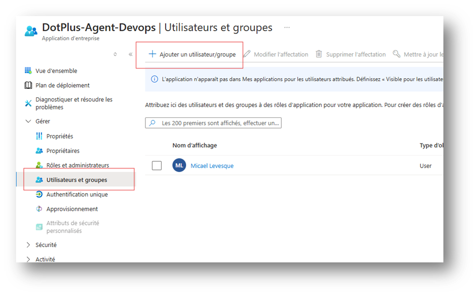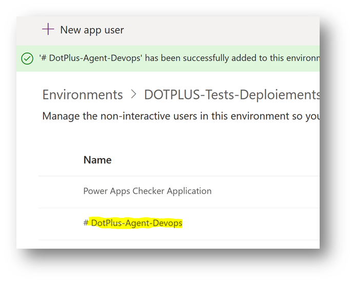 b. Ajouter le compte de service aux utilisateurs de l’application d’entreprise :
