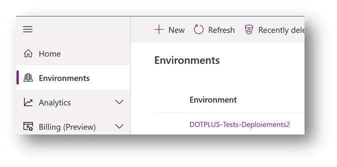 2. Allez à l’option « Environnements » et choisissez l’environnement en question :