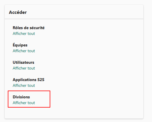 • Assigner des rôles de sécurité propres à cette division.