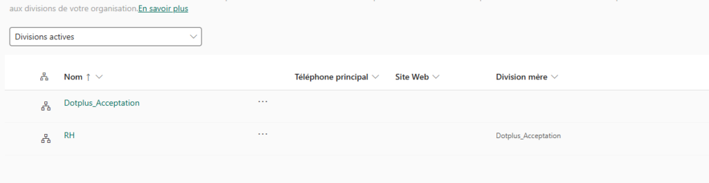 4. Vous devriez voir l’ensemble des divisions existantes sous l’onglet division Active