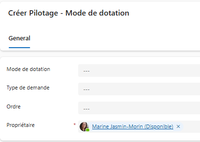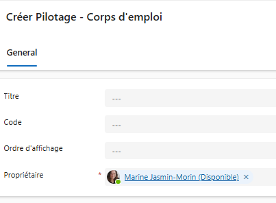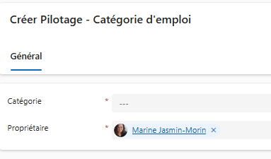 | Propriétaire* | Utilisateur responsable de la gestion de cet élément. |