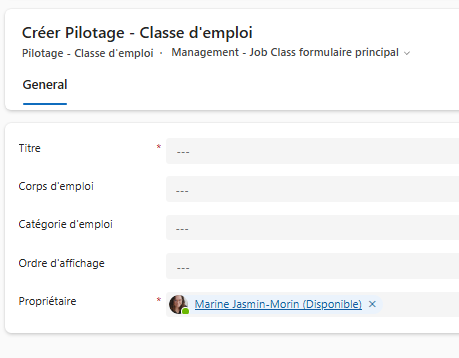 - Cliquer Créer → Classe d’emploi.