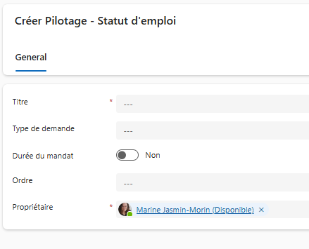 - un champ Propriétaire obligatoire pour identifier la personne responsable du suivi.