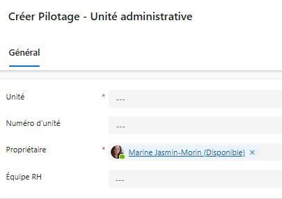| Équipe RH | L’équipe RH attitrée pour cette unité (si applicable). |