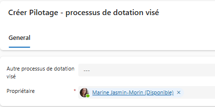 - Cliquer Créer → Processus de dotation visé.