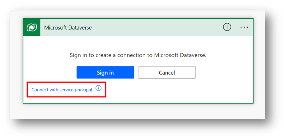 Cliquez sur le lien « Connect with service principal »
