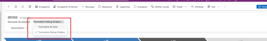 - Sélectionner le formulaire Debug DotPlus