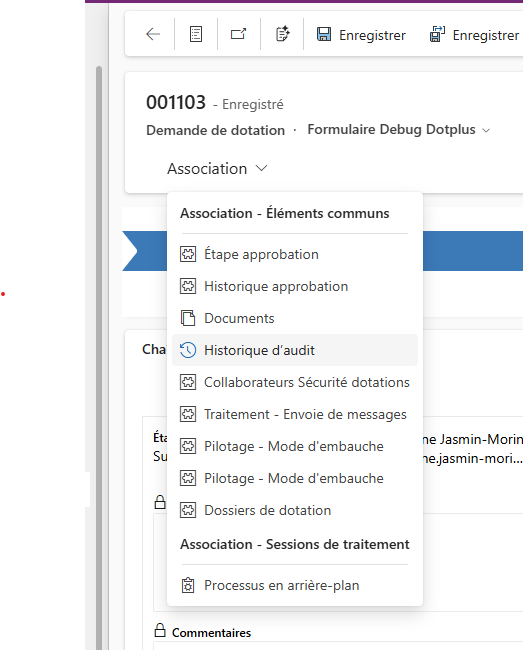 3. Sélectionner Association >> Historique d’audits