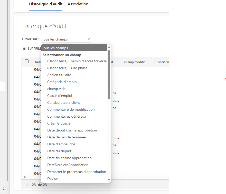 4. Sélectionner le type de champ que vous voulez auditer en cliquant sur Filtrer sur