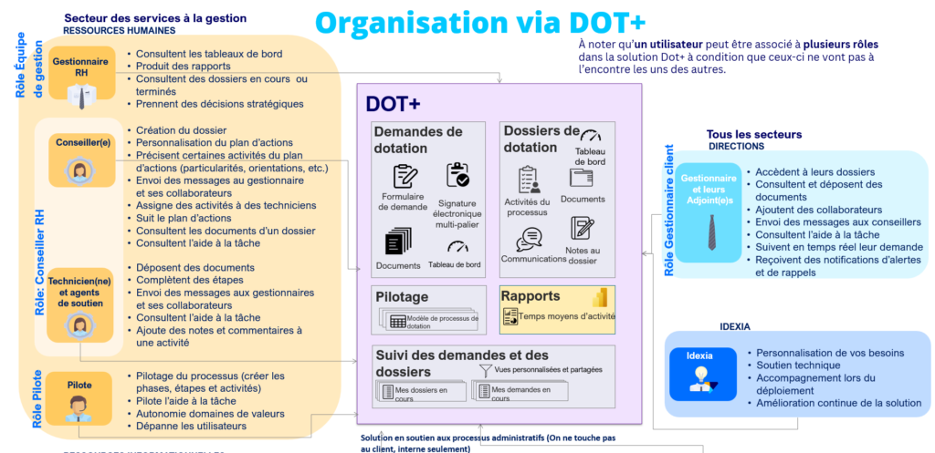 Ce rôle représente l’équipe RH au complet. Il permet de gérer le dossier de dotation tout en effectuant les actions de suivis nécessaires tout en communiquant avec les intervenants concernés. Que ce soit le conseiller RH, le technicien ou agent de soutien, tous ces titres sont regroupés sous le même rôle.