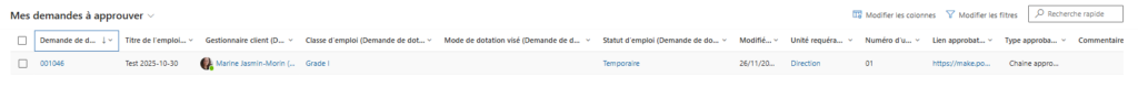 Astuce : C’est la vue idéale pour suivre la progression de vos demandes jusqu’à leur approbation finale.