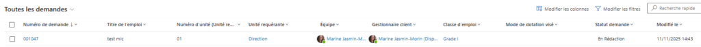 Astuce : C’est la vue de référence pour les équipes RH, qui peuvent ensuite créer les dossiers à partir des demandes approuvées.