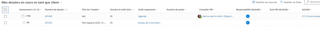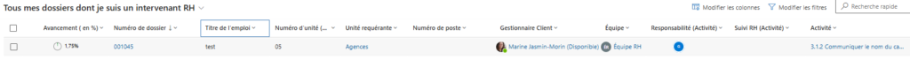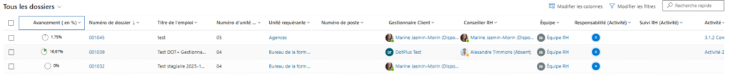 • Les dossiers assignés à différents conseillers RH ou gestionnaires.