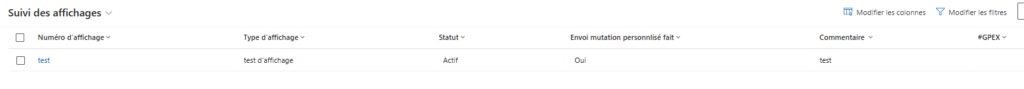 Cette vue regroupe les dossiers pour lesquels une affichage de poste est en cours ou terminé.